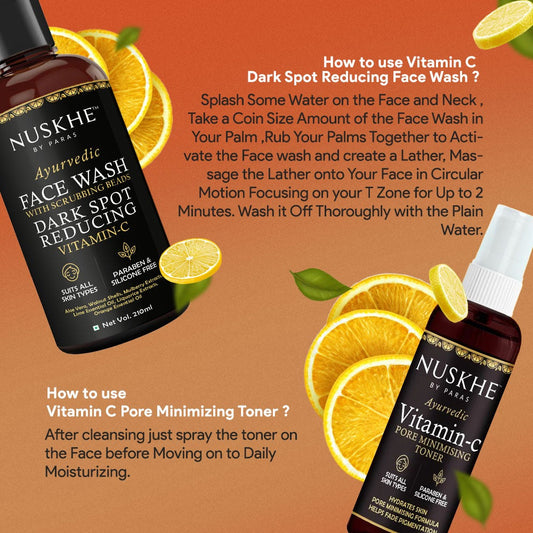 Nuskhe By Paras Vitamin C Cleanser Toner Combo - Vitamin C Dark Spot Reducing Face Wash and Vitamin C Pore Minimizing Toner