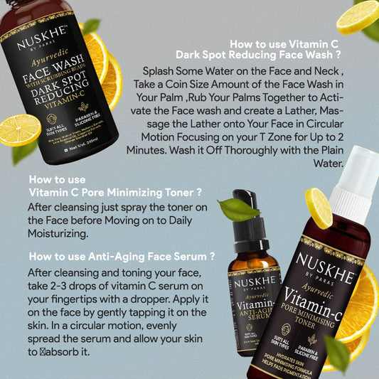 Nuskhe By Paras Pure Vitamin C Combo - Vitamin-C Face Wash, Toner and Anti ageing Serum