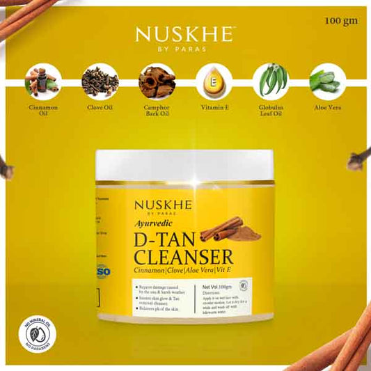 Nuskhe by Paras Ayurvedic D-Tan Cleanser for Tan Removal, Sun Damage Protection and Skin Whitening - 100 Gram