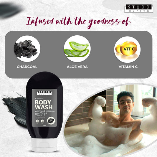 Studd Muffyn Charcoal Body Wash with Activated Charcoal, Aloe Vera & Vitamin-E for Men and Women- 100ml