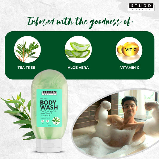 Studd Muffyn Tea Tree Body Wash with Tea Tree leaf oil, Aloe Vera & Vitamin-E for Men and Women- 100ml