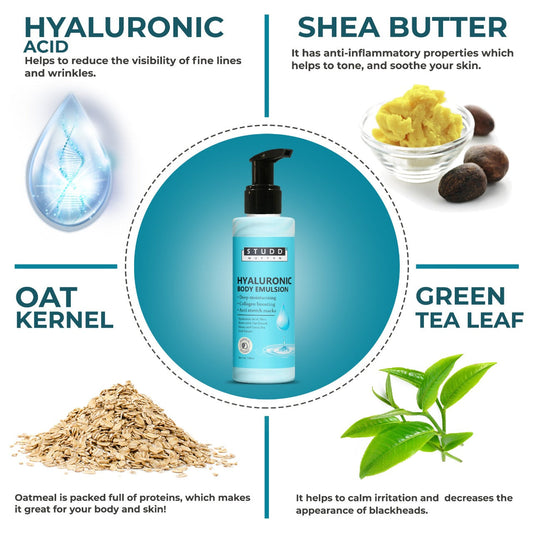 Studd Muffyn Hyaluronic Body Emulsion for Collagen Boosting , Reduces stretch marks -100ml