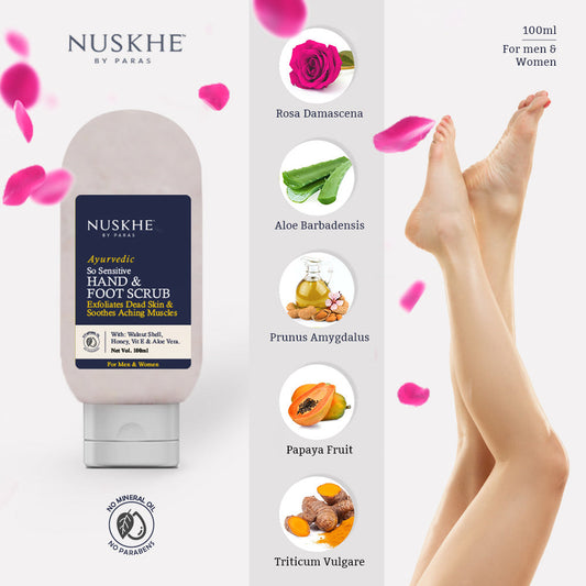 Nuskhe by Paras Ayurvedic So Sensitive Hand and Foot Scrub for Men and Women - 100 ml