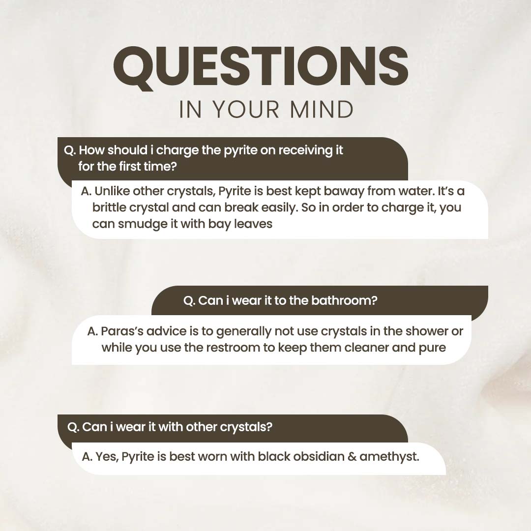 NOTE: The pyrite jewels on our website are completely natural and raw because we don't polish the crystals so that they can create a barrier against negative energies and promote pure physical and spiritual healing.